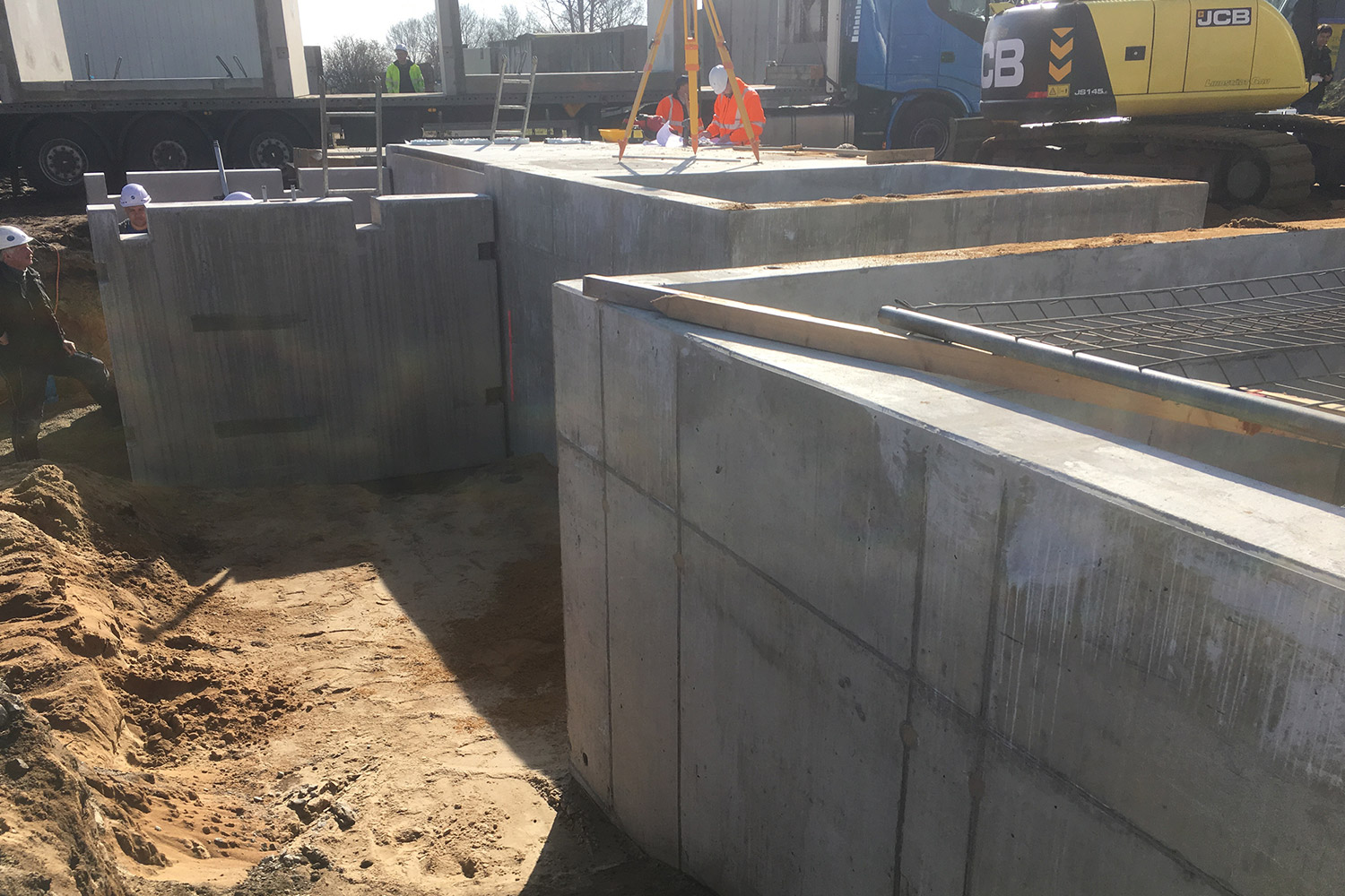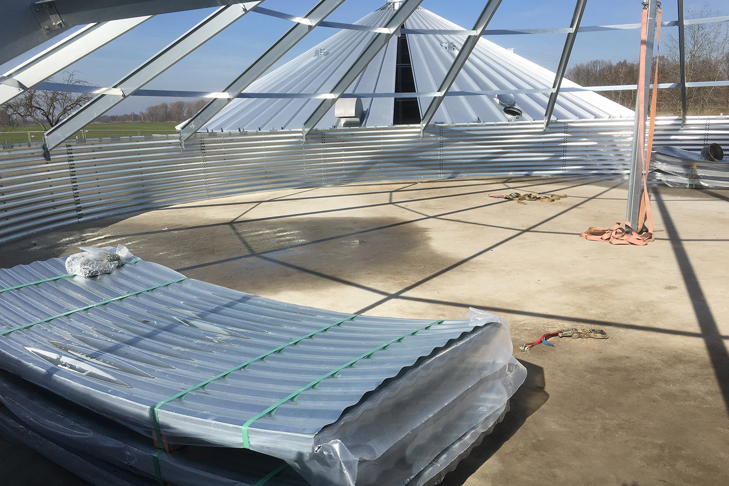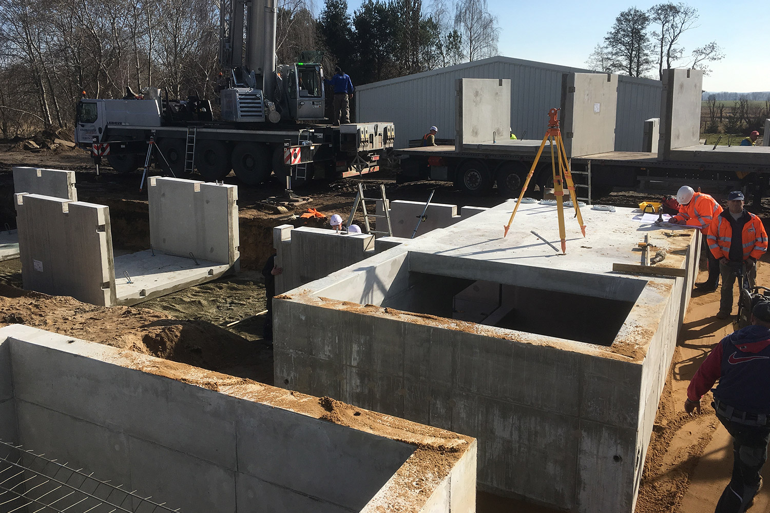 5000 m³ Bodenaustausch, acht Fundamente mit je 225 m² (Stärke 1,80 m) für Lagersilos und Abfüllgruben für Kornlager, verbaut wurden 4000 m³ Beton